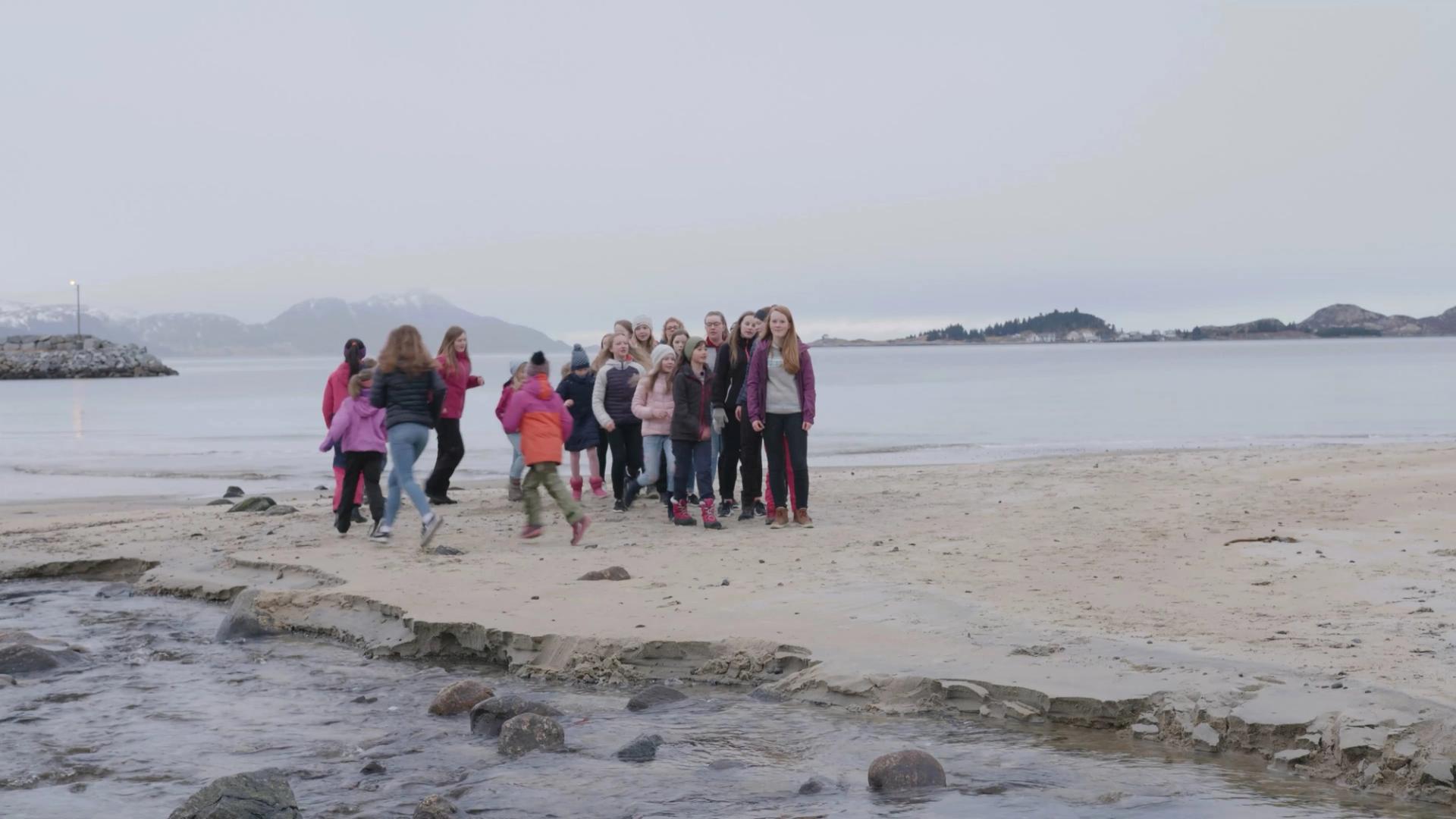 Dansarane steller seg parvis på rekker: éi «Mette-rekke» og éi «boys-rekke».